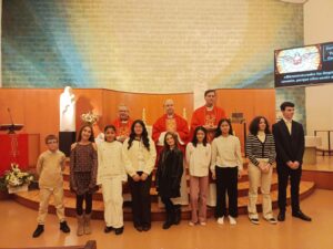 El pasado 31 de enero, 9 jóvenes de nuestra Unidad Pastoral «Sagrado Corazón» recibieron el sacramento de la confirmación de manos de D. Mikel Aranguren, vicario general de nuestra diócesis. Rezamos por estos jóvenes, para que encuentren siempre la alegría en recorrer el camino hacia el Padre, en el seguimiento de Cristo y bajo la acción del Espíritu Santo, cuyos dones acaban de recibir en plenitud.